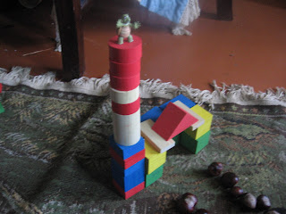 Каштаны я собирала и в прошлом году, до сих пор банка полная стоит. А в этом их опять так много, что устоять просто невозможно. Уже целое ведро набрали. Теперь уже вместе с Сеней. Придумалось как-то само собой и пара игр с каштанами.